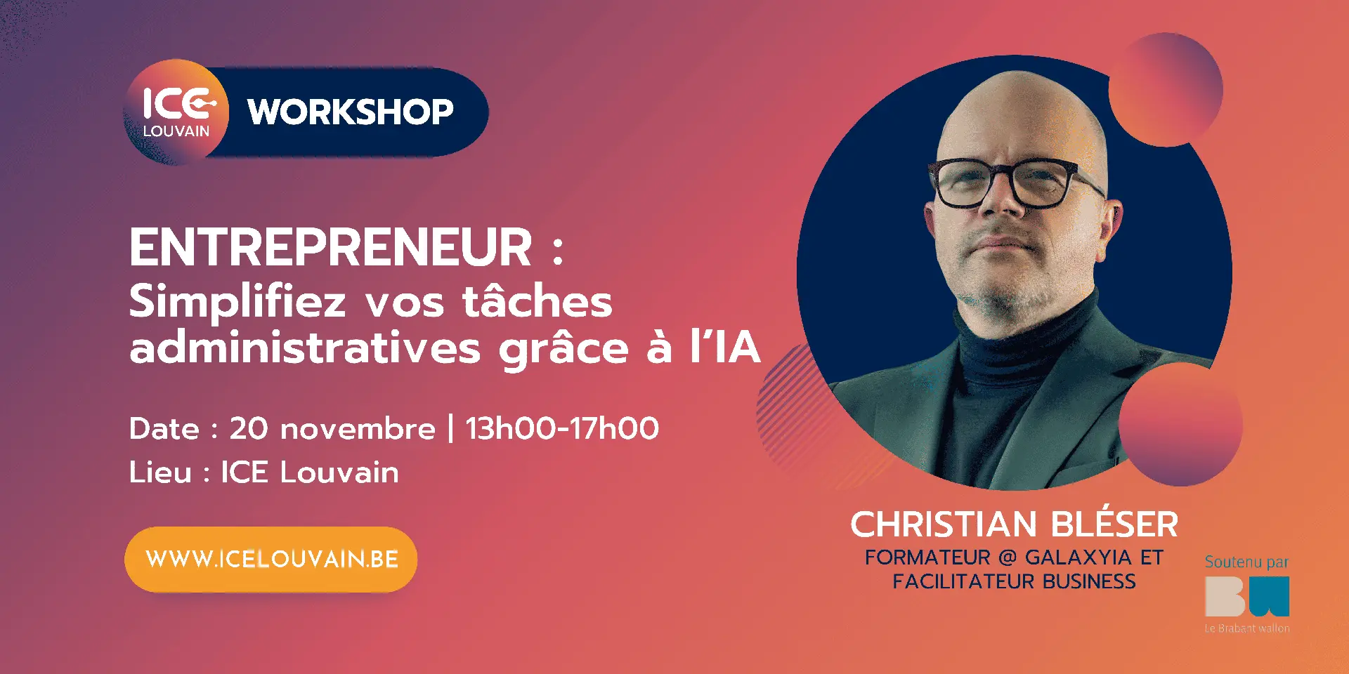 📍 Lieu : ICE Louvain – Business Center, Rue Louis de Geer 6, 1348 Ottignies-Louvain-la-Neuve (salle panoramique)